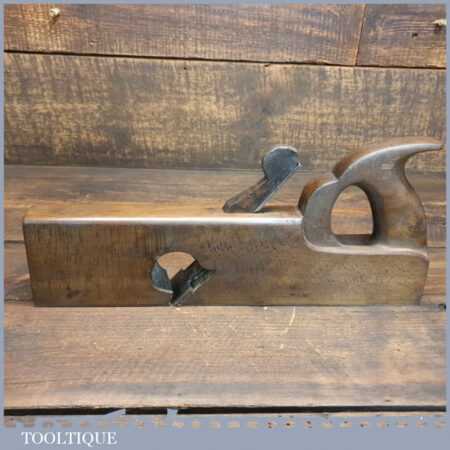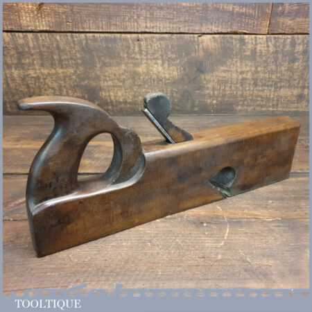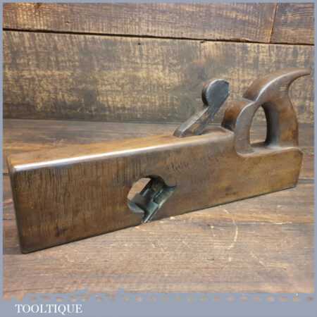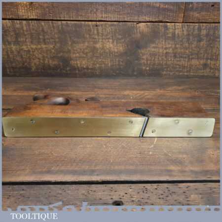 Antique 13 ½” handled beechwood rabbet plane with brass sole, in good used condition. The plane has been lapped flat and sharpened ready for use.