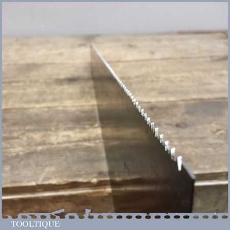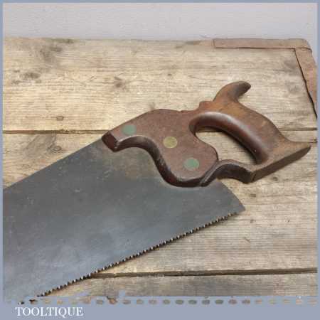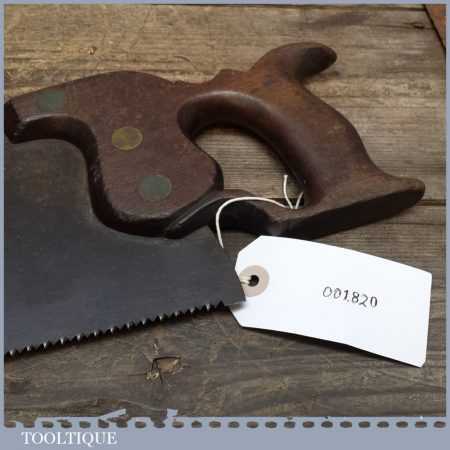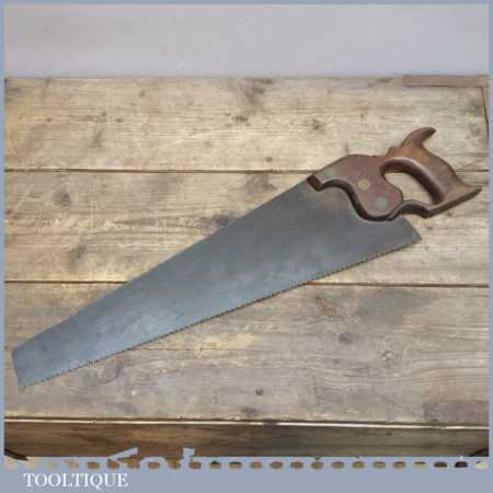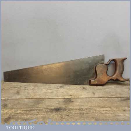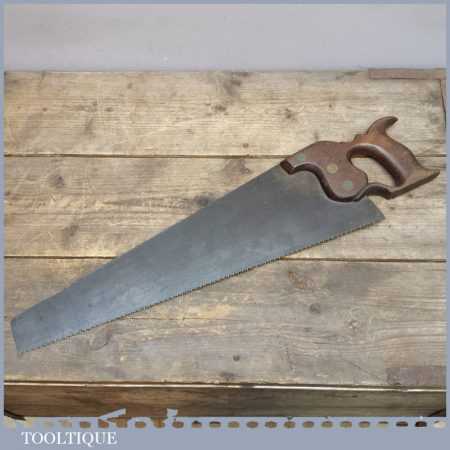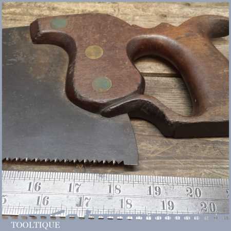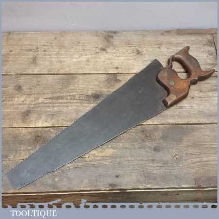 Antique 18 ½” cross cut saw with beech London pattern handle and split style studs, the saw is in good straight and sharp condition as usable now as the day it was made.