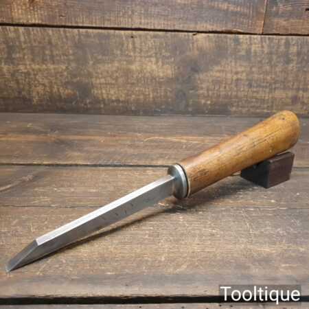The chisel has been checked to ensure the tang is seated properly and the handle is solid and fit for use. All refurbished chisels are water cooled during the sharpening process to ensure the tempering is not affected.