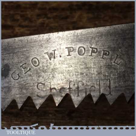Antique Geo. W. Popple of Sheffield (1879-1922) 12” keyhole saw with 6 ½” tpi, fully refurbished and sharpened cross cut ready for use.