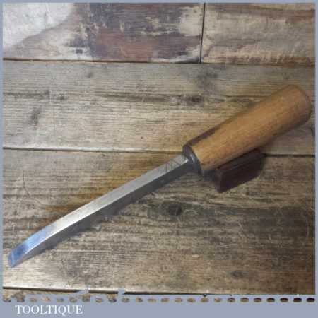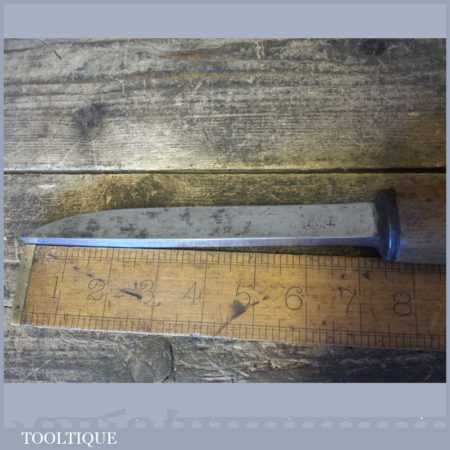 The chisel has been checked to ensure the tang is seated properly and the handle is solid and fit for use. All refurbished chisels are water cooled during the sharpening process to ensure the tempering is not affected. These old cast steel chisels are hand forged and far superior in quality because of the high carbon steel that was used which produces a keener edge, this was also generally used throughout the full length.