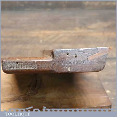 Antique 18th century Mutter (1766-1811) side snipe beechwood moulding plane with boxwood insert, in good used condition. Note: Odd few dormant worm holes.