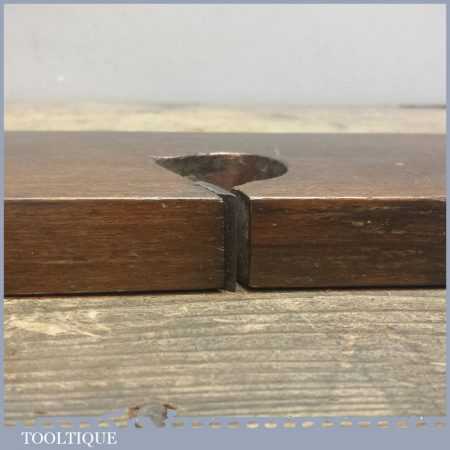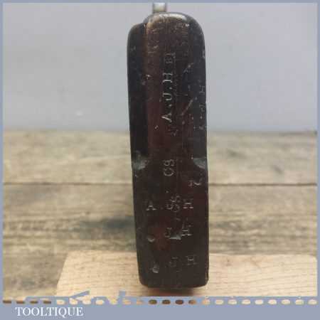 Antique 18th century rabbet moulding plane which has over stamped makers mark and seems to be in good used condition for its age although some age cracks are present, see images. It measures 10” long and 15/16” widest point.