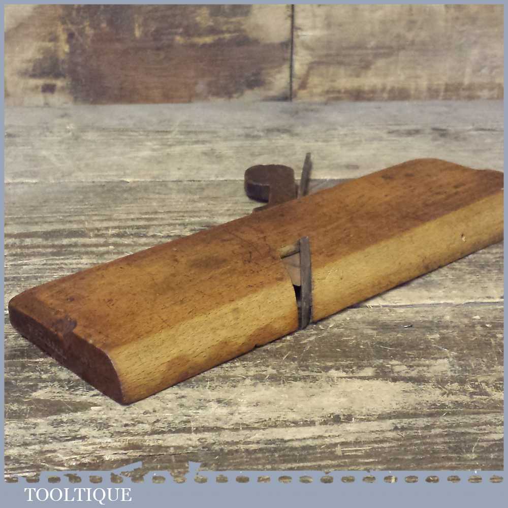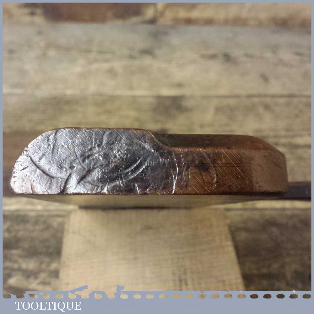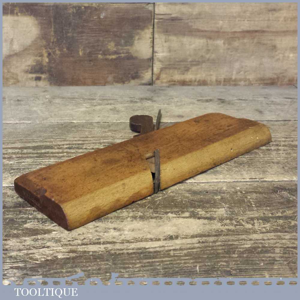 Antique 18th century side round moulding plane 9 ¾” long in good used condition. Unknown maker due to being over stamped by an owner and had a replacement iron.