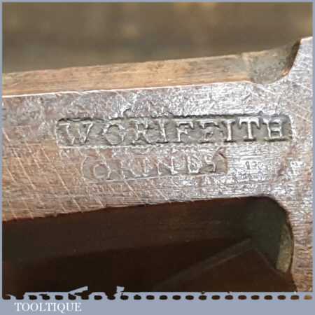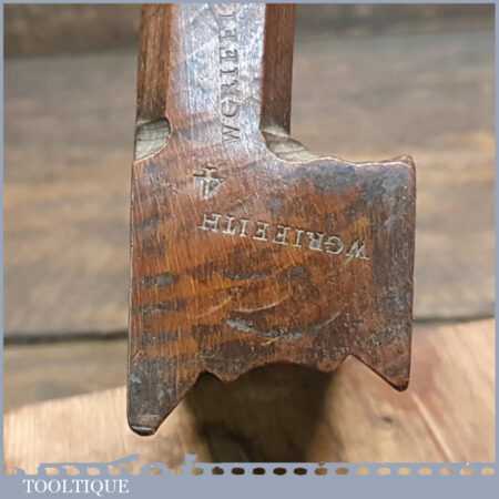 Antique 18th century Thomas Okines (1740-1770) square ovolo beechwood moulding plane in good used condition. Note: The W. Griffith stamp is an overstamp by the owner. You can still see the crown at the top and the space where ‘Thomas’ was originally. Good condition for its age.