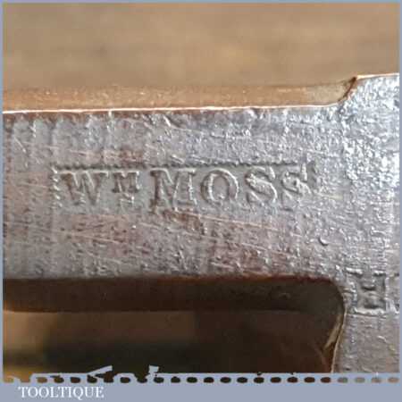 Antique 18th century Wm. Moss (1775-1800) hollowing beechwood moulding plane in good used condition for its age. Note: Small nibble near the throat.