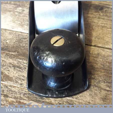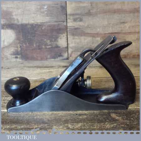 Antique 19th century Stanley USA No: 4 low knob smoothing plane with original sweetheart iron and rosewood handles, fully refurbished ready to use and in good used condition. This has an unusual lateral adjuster fully marked with pat dates and the first I’ve seen with it, presumably one of the first types made when this mechanism was introduced.