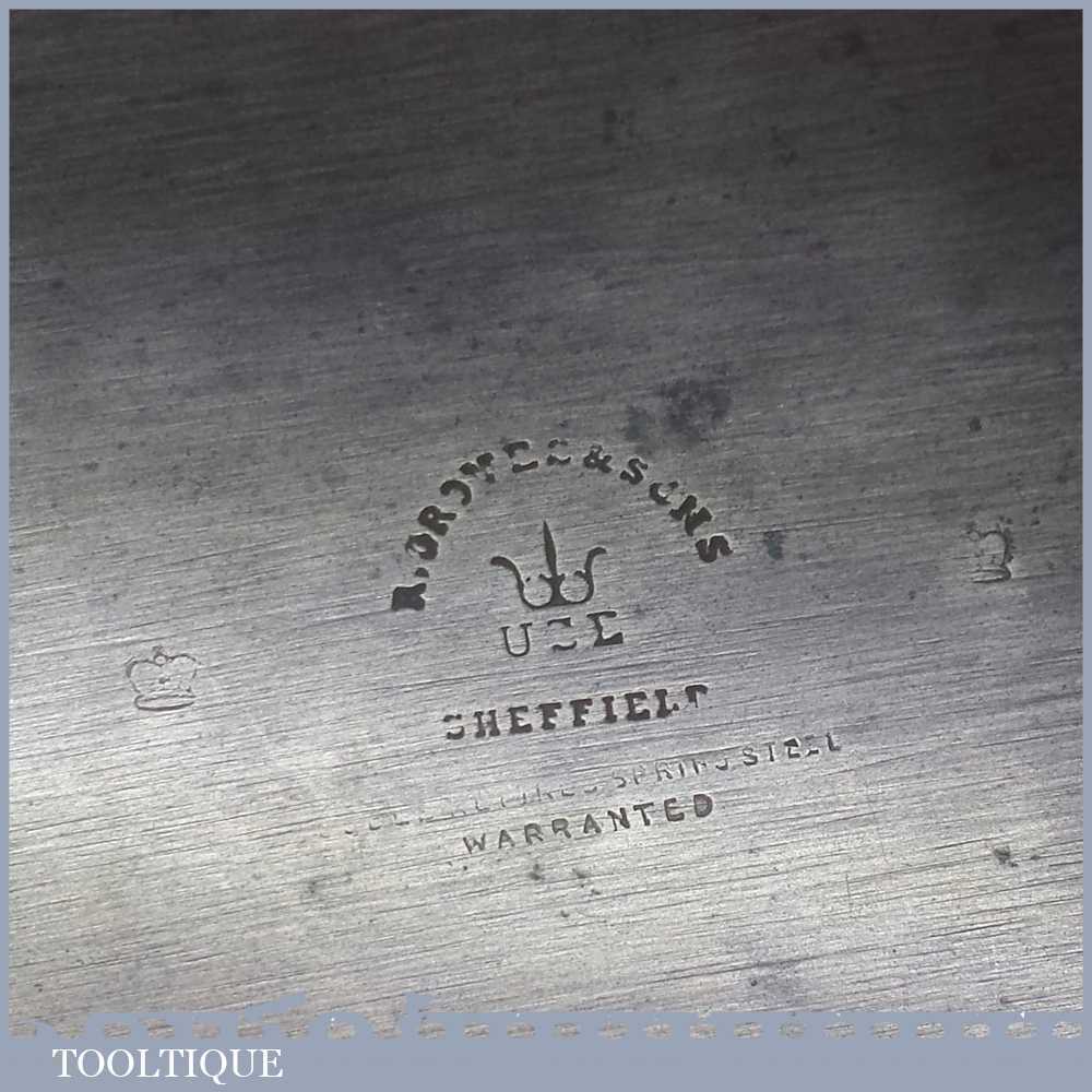 Antique 19th century R Groves 3 TPI Rip saw in good sharp & straight used condition. These saws certainly possess excellent quality spring steel made by supreme saw maker.