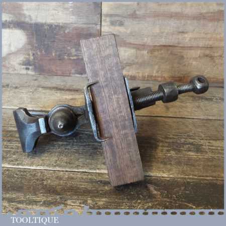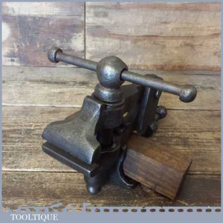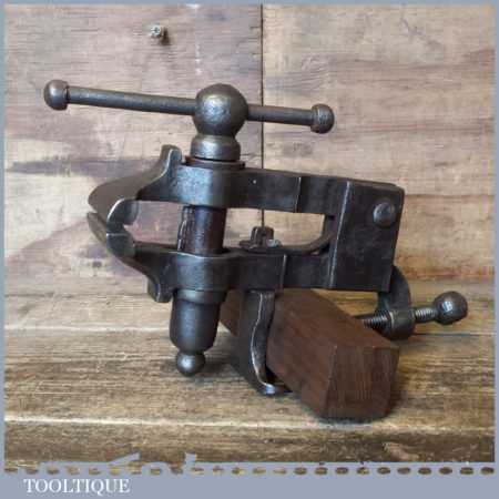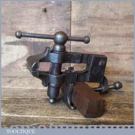 Antique 2 ½” cast steel clock makers table vice, in good used condition. This is quite a large 19th century vice with a 2 ½” jaw and moves freely for use.