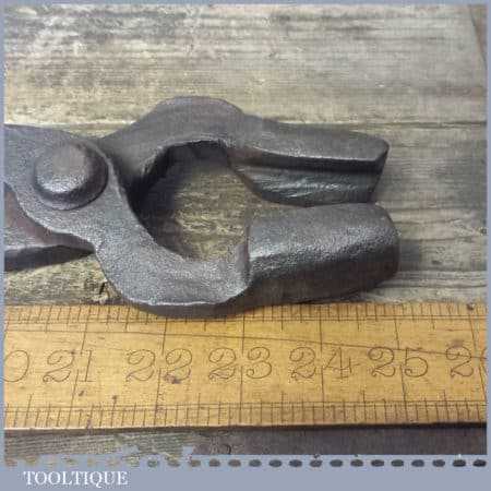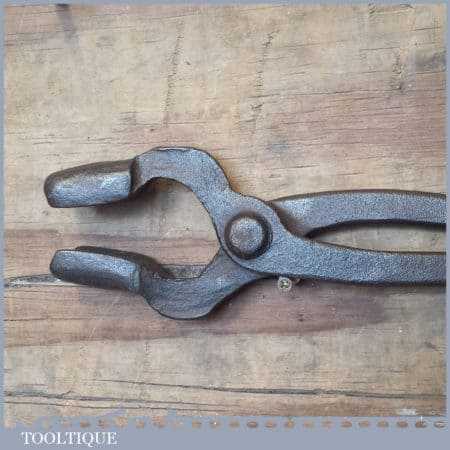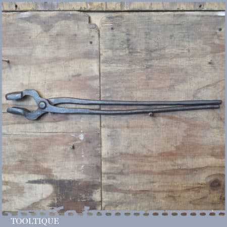 Antique 25” long blacksmith’s square box tongs in good used condition. These are a bit rickety and are loose jointed but that’s the way they were made. Note: The end do not meet these are for holding larger items