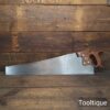 Antique 26” Henry Disston 6 Tpi Rip Saw fully refurbished & sharpened ready for use and in good used condition. Note: Sharpened with a relaxed rake at the toe, progressively getting more aggressive towards the handle. The saw has been thoroughly cleaned, jointed, resharpened and set by hand so that all the hard work of getting an old vintage saw right has been undertaken. We do this so that the next sharpening is easier and no more than a quick freshen up would be required. Those who are familiar with sharpening will know this is no small job and requires skill, effort and time to achieve good results.