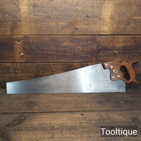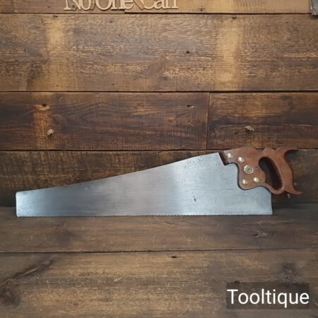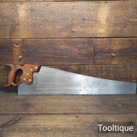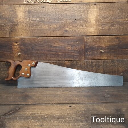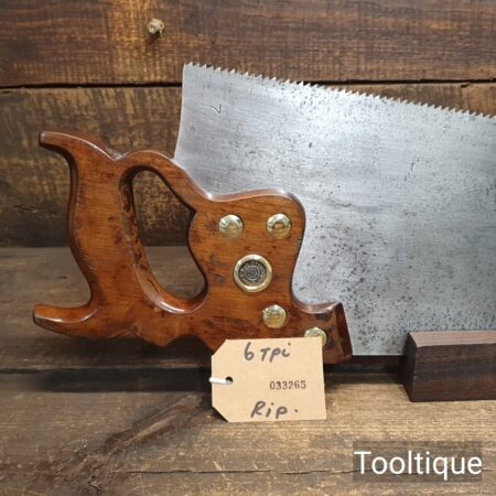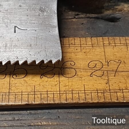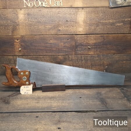 Antique 26” Henry Disston 6 Tpi Rip Saw fully refurbished & sharpened ready for use and in good used condition. Note: Sharpened with a relaxed rake at the toe, progressively getting more aggressive towards the handle. The saw has been thoroughly cleaned, jointed, resharpened and set by hand so that all the hard work of getting an old vintage saw right has been undertaken. We do this so that the next sharpening is easier and no more than a quick freshen up would be required. Those who are familiar with sharpening will know this is no small job and requires skill, effort and time to achieve good results.