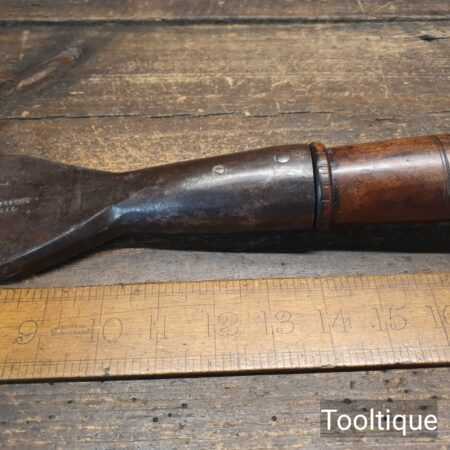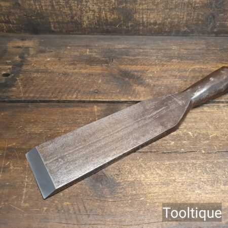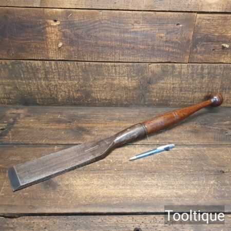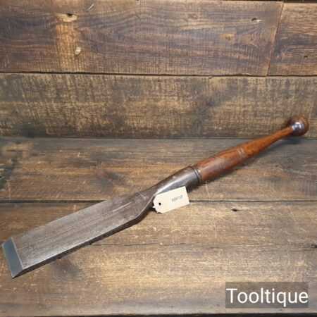 Antique 3” wide Greaves & Sons carpenters timber framing Slick chisel in a good used condition. The chisel has been sharpened and honed ready to use. All chisels are water-cooled in the sharpening & flattening process so it doesn’t affect its temper. Superb quality chisel as good as anything you will ever find with well fitted handle.