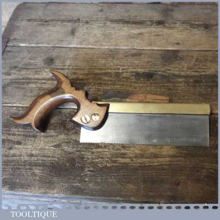 Antique 8” Colver Bros (c. 1900) brass back dovetail saw with 12 tpi, fully refurbished and sharpened ready for use. The saw has been sharpened cross cut as the saw plate seems to be a thicker gauge compared with other makers.