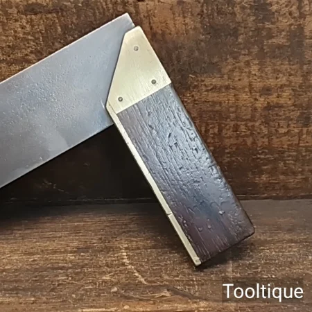 Antique 8” Rosewood & Brass Carpenters Square with 45 Degree Brass insert, refurbished ready for use and in good used condition. Note: Tested Square.