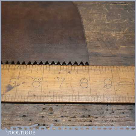 Antique 8” Stone masons Drag course saw plate, sharpened ready for use and in good used condition. Approx 3mm thick and 4 tpi, these are pretty easy to maintain and resharpen (technically) and possesses good quality steel.