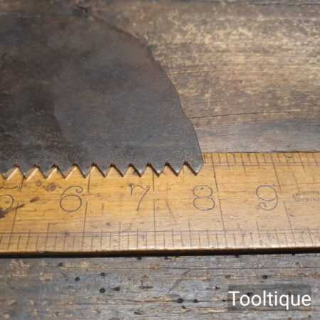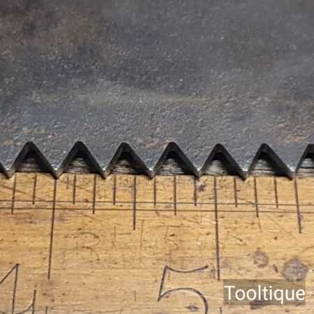 Antique 8” Stonemasons hand Drag saw plate tool, sharpened ready for use and in good used condition. Approx 3mm thick and 3 TPI, these are pretty easy to maintain and resharpen (technically) and possesses good quality steel, it took some effort to sharpen this as it had not seen a file for many years