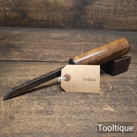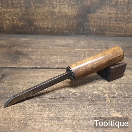 Antique 9/32” Carpenters Pigsticker Mortice Chisel with a Beechwood Handle, refurbished ready for use and in good used condition. Note: Minor handling Crack Resin Filled and smooth. All refurbished chisels are water cooled during the sharpening & face flattening process to ensure the tempering is not affected.