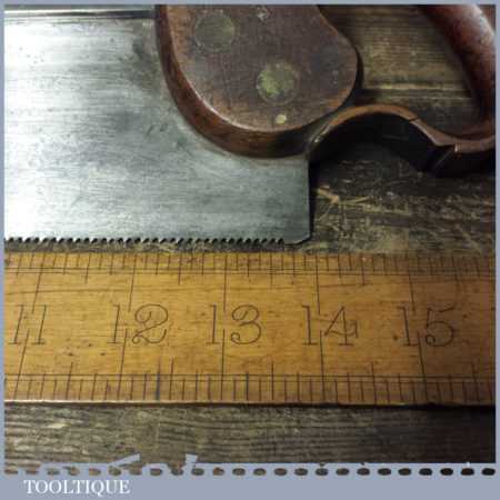 Antique Ashall London (c.1861-1898) 14” brass back tenon saw with 10 ½ tpi, fully refurbished and sharpened cross cut ready for use.