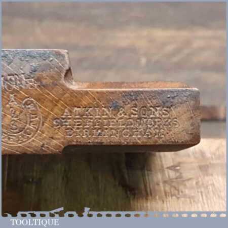 Antique Atkin & Sons 1/8” beading beechwood moulding plane with boxwood insert, in good used condition.