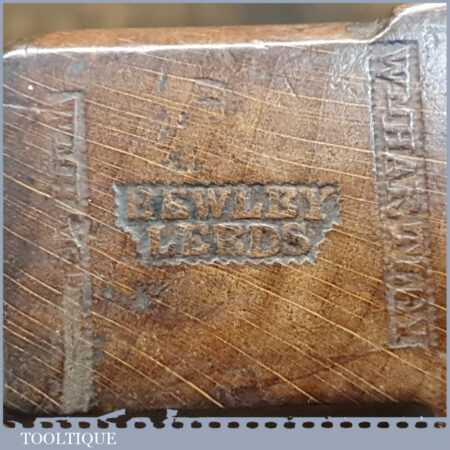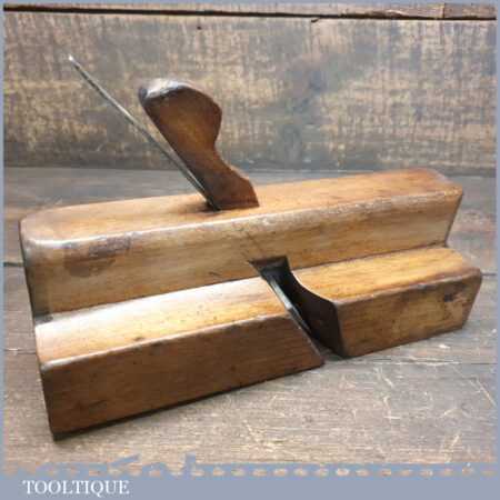 Antique Bewley of Leeds (1798-1847) large Grecian ogee beechwood moulding plane with boxwood insert, in good used condition.
