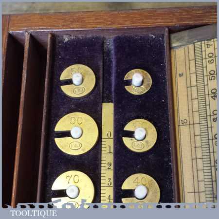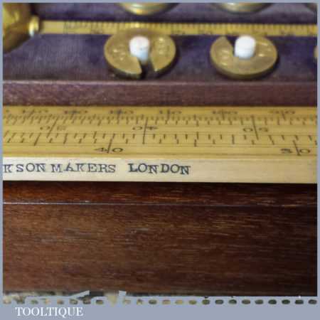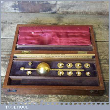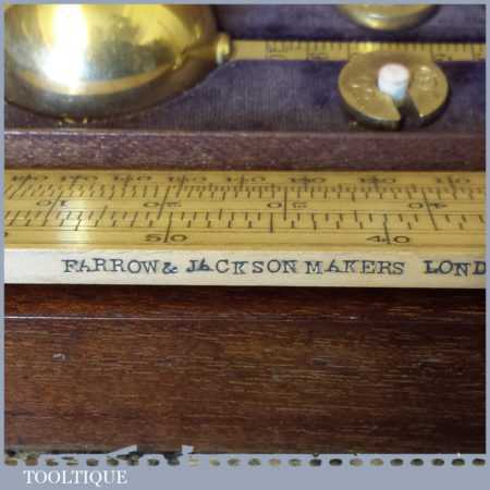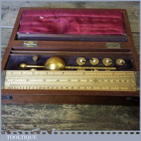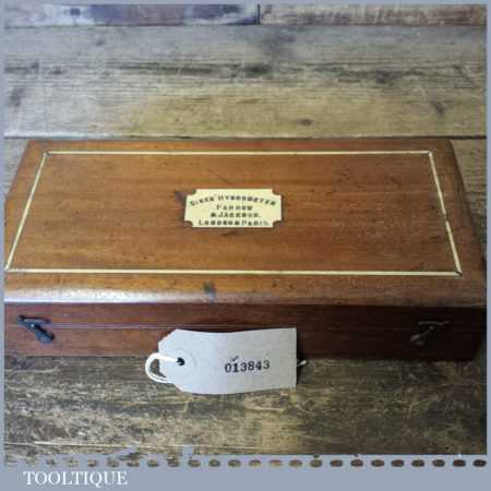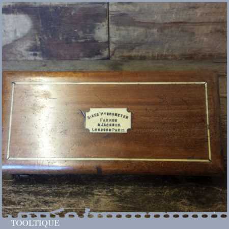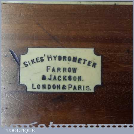 Antique boxed Farrow & Jackson ‘Sikes’ proof testing hydrometer kit with boxwood sliding ruler in good used condition. Note: Not complete as there is no thermometer