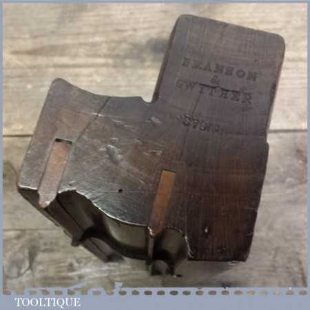 Antique Branson & Gwyther quirk olovo & bead moulding plane in good condition although it does have the odd worm hole and age cracks to the ends, the plane in itself is solid and these are minor details. The hole through the plane would have had a rope as these wide planes were hard to push. .