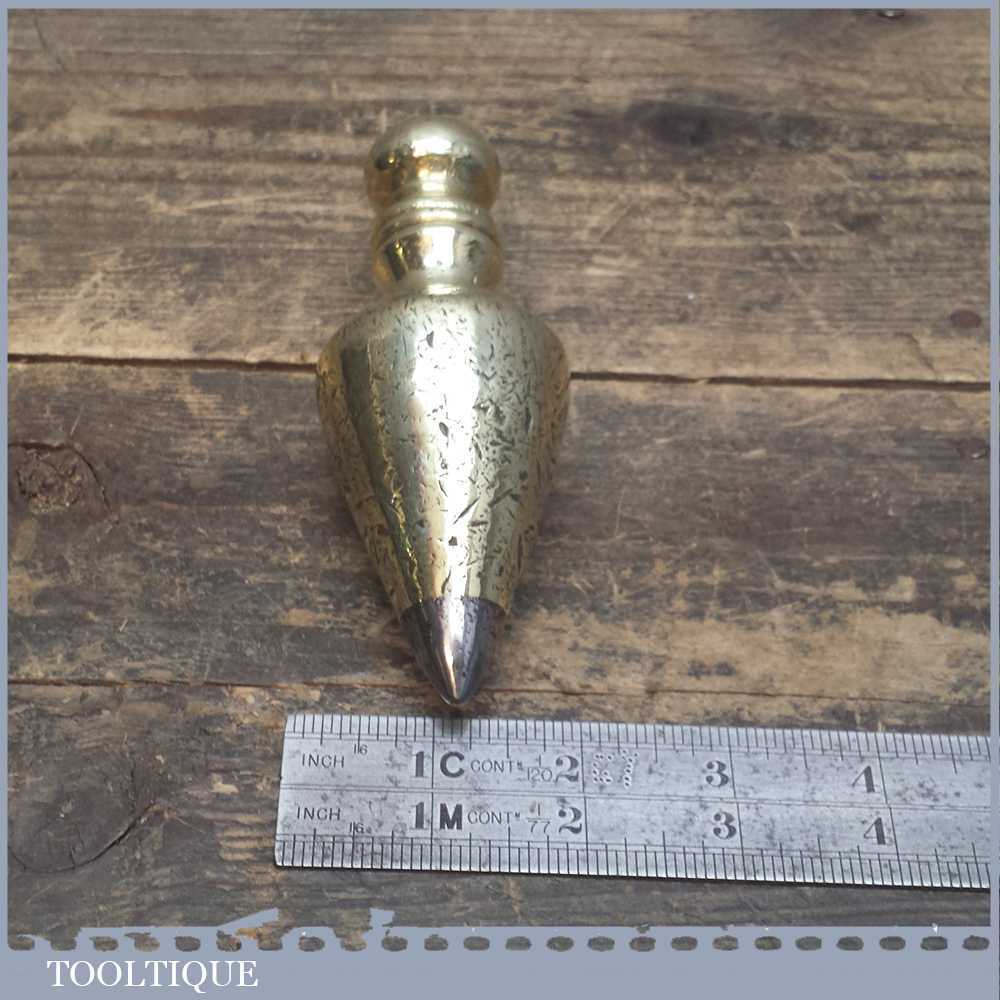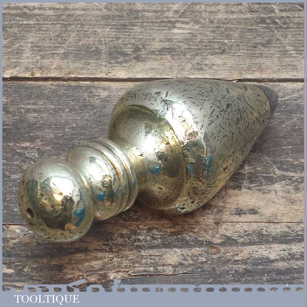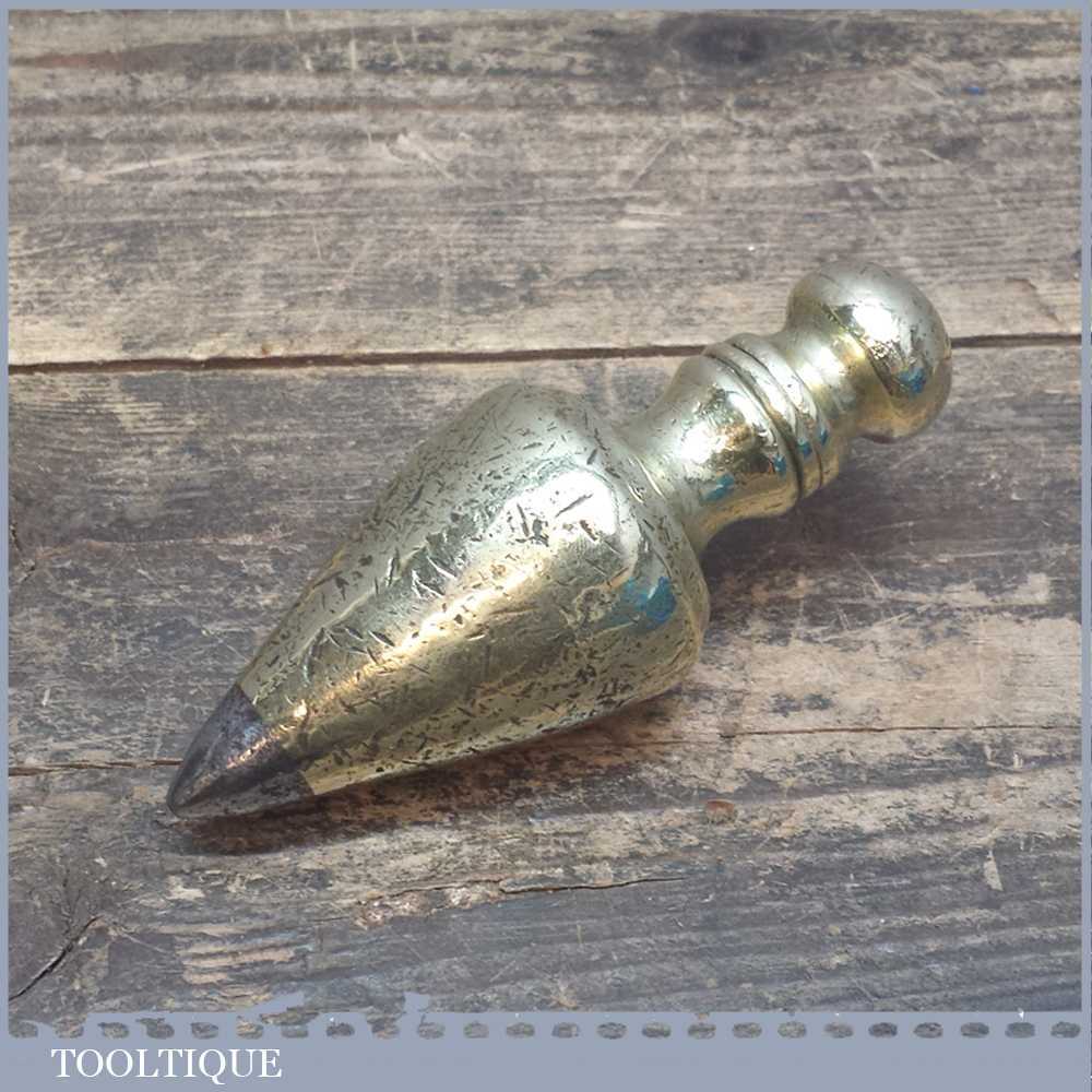 Antique Brass 5” long and heavy steel tipped plumb bob, the body has plenty of marks and it’s seen a pretty active life however it’s a really different shape and a good size.
