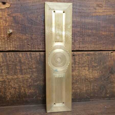 An antique brass beehive pattern finger plate or sometimes called a push door plate.