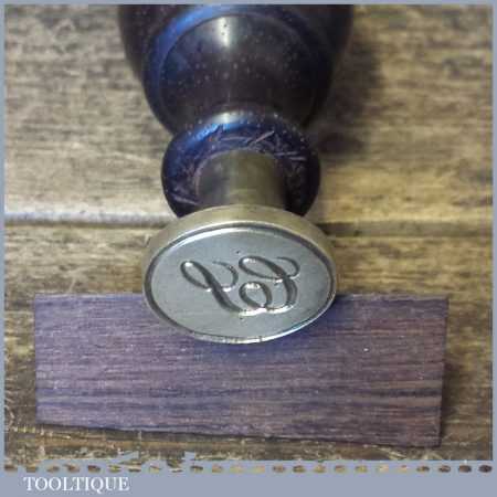 Antique brass monogram sealing wax stamp with a rosewood handle in good used condition.