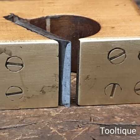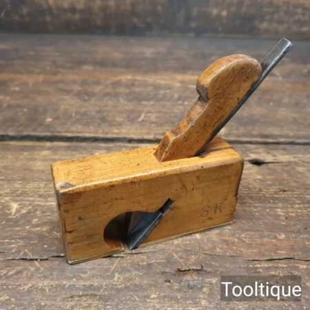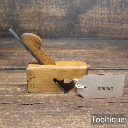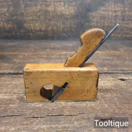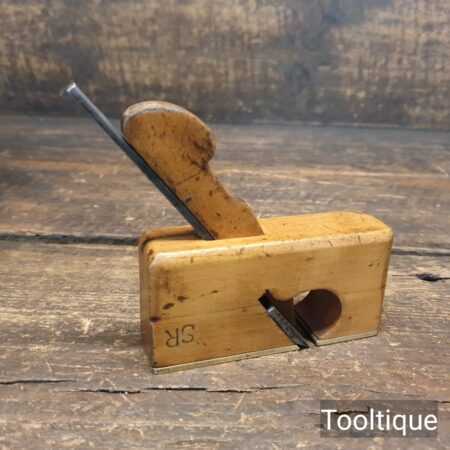 Antique Buck 242 Tot Crt Rd boxwood luthiers small rabbet plane with brass sole measuring 15/16ths of an inch wide and approx 3 ½” long.