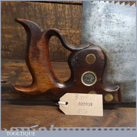 Antique c.1880 Wingfield Rowbotham & Co 26” rip saw with 3 tpi, fully refurbished and sharpened ready for use.