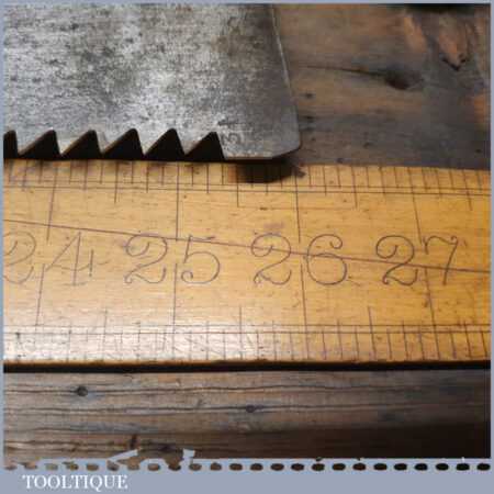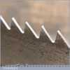 The saw has been thoroughly cleaned, jointed, resharpened and set by hand so that all the hard work of getting an old vintage saw right has been undertaken. We do this so that the next sharpening is easier and no more than a quick freshen up would be required. Those who are familiar with sharpening will know this is no small job and requires skill, effort and time to achieve good results.