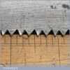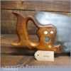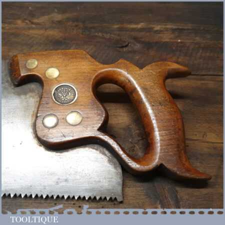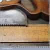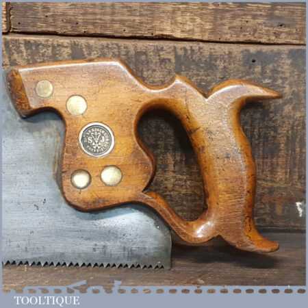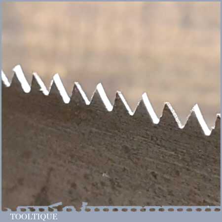 The saw has been thoroughly cleaned, jointed, resharpened and set by hand so that all the hard work of getting an old vintage saw right has been undertaken. We do this so that the next sharpening is easier and no more than a quick freshen up would be required. Those who are familiar with sharpening will know this is no small job and requires skill, effort and time to achieve good results.