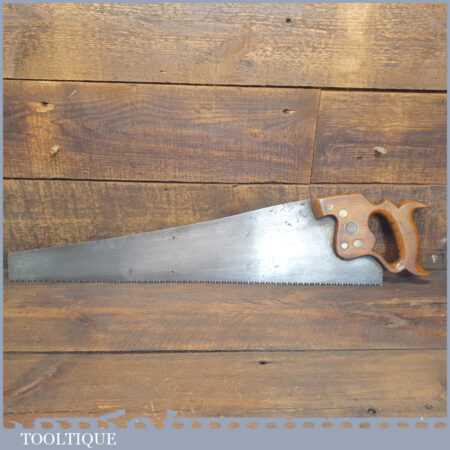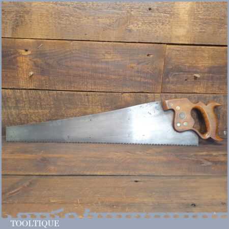 Antique c1900 Spear & Jackson 24” cross cut handsaw with 5 ½” tpi, fully refurbished and sharpened ready for use. Wonderful quality old saw in what looks to be lightly used condition as it has so much meat left in the plate