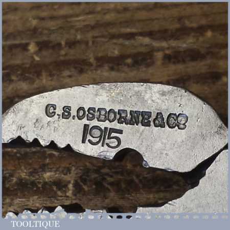 Antique C. S. Osbourne & Co. upholsterer’s Swedish type lasting pincers (dated 1915) in good used condition.