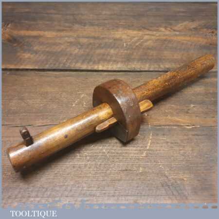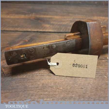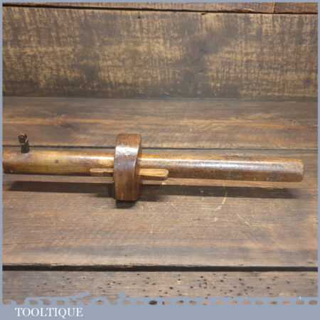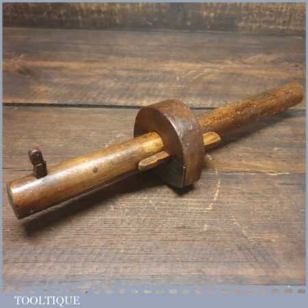 Antique carpenters beechwood and steel plated cutting gauge in good used condition. This struck me as a rather nicely made tool and is very attractive in its rustic construction.