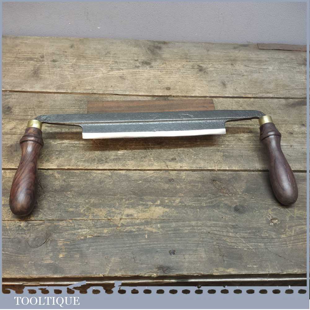 Antique Cast steel drawknife by Robert Sorby with an 8 inch cutting blade which has been carefully sharpened and honed and is now ready to use, it’s also now easy to maintain with regular honing for a super sharp cut. The blade is a really old drawknife with replacement hardwood handles.