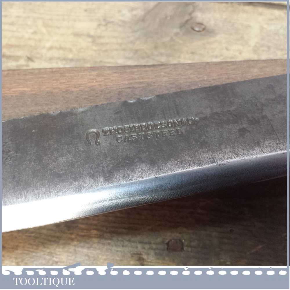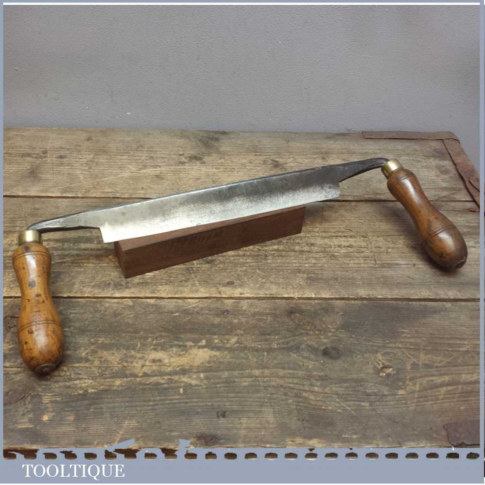 Antique Cast steel drawknife by Thomas Ibbotson with an 9 1/2 inch cutting blade which has been carefully sharpened and honed and is now ready to use, it’s also now easy to maintain with regular honing for a super sharp cut. The blade is a really old drawknife and the handles look to be original.