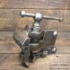 Antique cast steel small bench vice with 3 ½” jaws. The vice has been cleaned and all parts are free moving. Note: Maker’s name is indistinguishable.