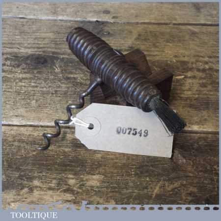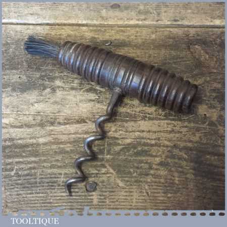 Antique corkscrew with a beehive style turned Rosewood handle with a horse hair end brush in good used condition.