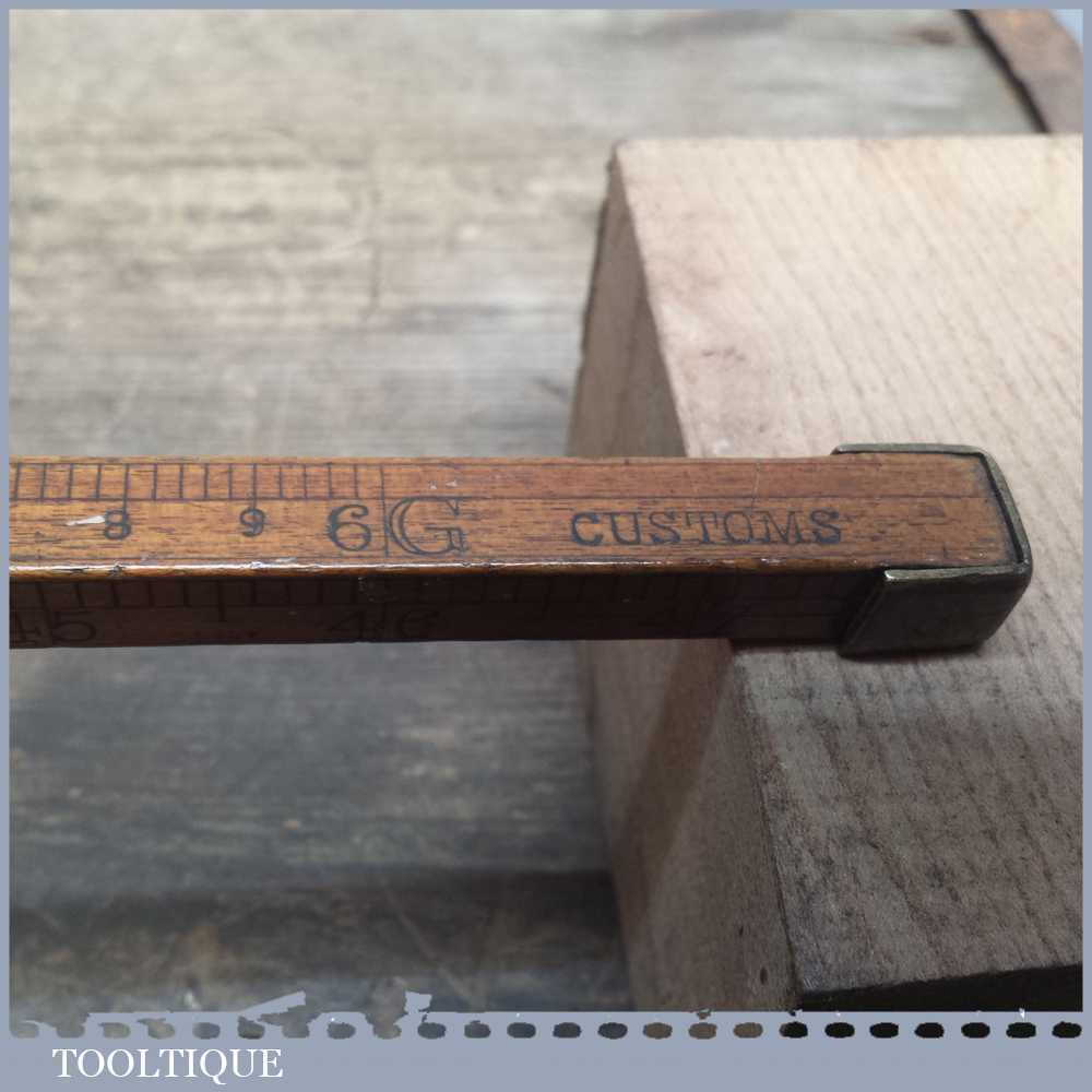 Antique 19th Century Dring and Fage London Maker to the Customs & Excise 4’ Custom Dipping Rod and is in good used condition. Very early Customs and Excise Boxwood Dipping Rule By Dring and Fage, with Brass Slide. Given they were used by HMRC these generally were used for testing liquids in barrels these are now scarce items. This one has the makers mark and is made from boxwood with brass tips and a brass depth indicator.