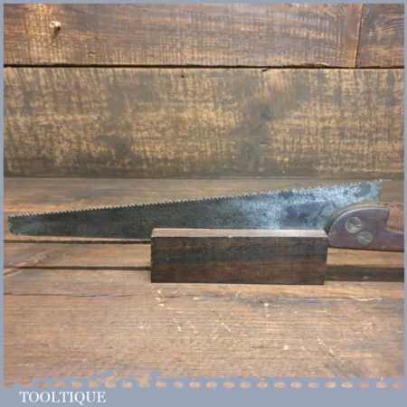Antique E. Pitcher 12” cross cut handsaw with beechwood handle Sharpened in good used condition ready for use.