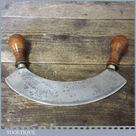 Antique French kitchenalia, chef’s half round herb chopper cutter in good used condition. Stamped with a part makers mark stamp and guaranteed steel. Note: The handles have been lacquered & sealed and it is very sharp if intended for use.