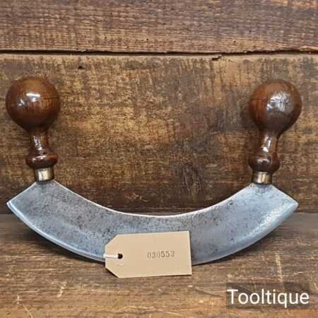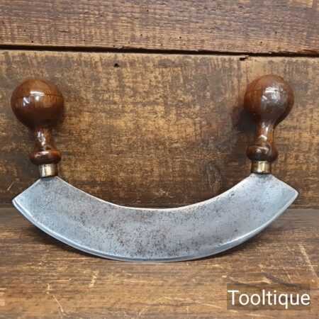 Antique French Mezzaluna herb chopper with beechwood handles refurbished and sharpened ready for use and in good used condition.