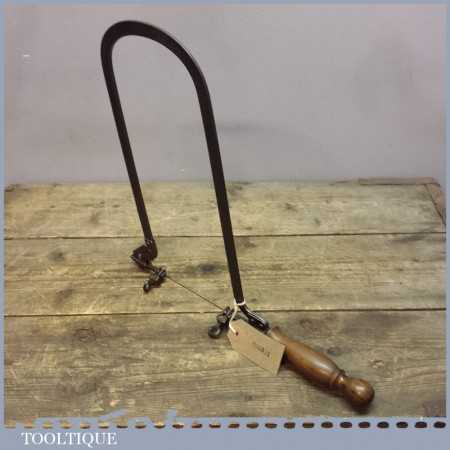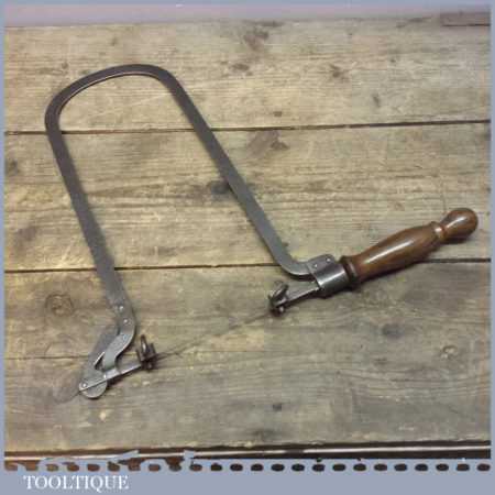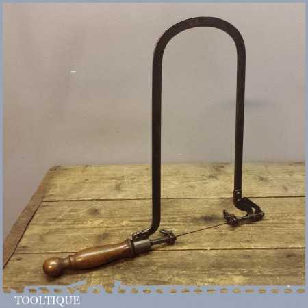 Antique Fret Saw with nice two part handle and lever tightening adjuster. Clamps the blade well and the frame is rigid old steel unlike modern types.