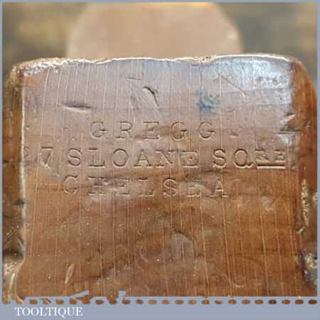 Antique Gregg of Sloan Square, Chelsea (1861-1872) carpenter’s 8” beechwood smoothing block plane with steel toe, in good used condition.