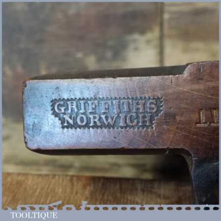Antique Griffiths of Norwich ½” common ogee beechwood moulding plane in good used condition.
