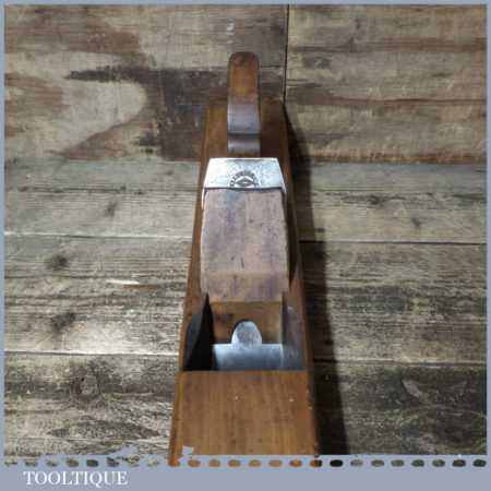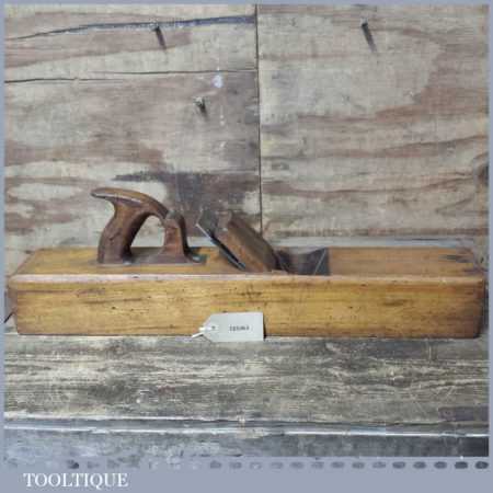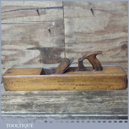 Antique Griffiths of Norwich 22” beechwood trying plane in good used condition. Lapped flat and sharpened ready for use.