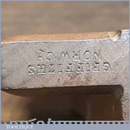 Antique Griffiths of Norwich 3/8” common ogee beechwood moulding plane with a York pitch iron in good used condition.